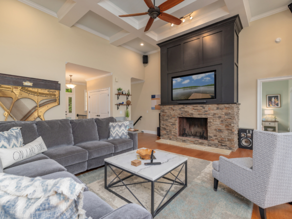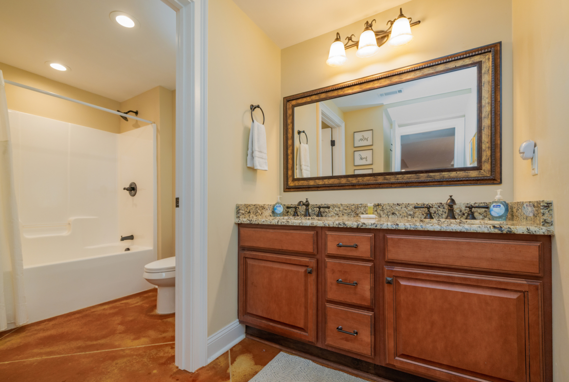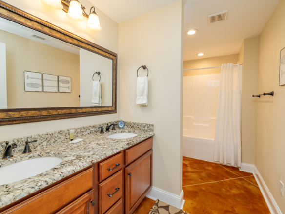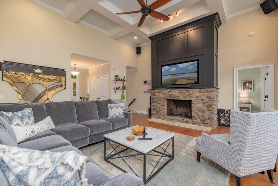 Elevate your outdoor experience on either of the two sun-kissed balconies or seek reprieve under the covered porch. As the sun sets, gather around the inviting fire pit or fire up the gourmet grill for an alfresco feast. With a lavish spread of outdoor furniture and provided yard games, every moment spent outside becomes an occasion.